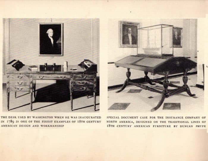 The results of the company’s extensive research and creative work were embedded in a large collection of designs, working patterns and furniture “documents.” It included a more than 150 designs of unusual interest recently made to test present requirements in style, quality, and price. In addition, there were hundreds of designs, (including patterns), of pieces of outstanding historic merit which had heretofore been manufactured and sold profitably. The collection represented an expenditure by the company of over $100,000 from 1928–1932, and of over $250,000 in total.