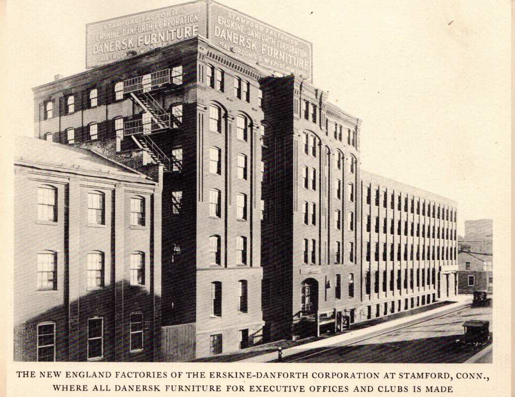 The Erskine-Danforth Corporation organized in1914 to manufacture and sell furniture. The following year manufacturing operations were established in Stamford, Connecticut. The company made a well-equipped manufacturing plant with 80,000 square feet of floor space. This location afforded satisfactory labor and manufacturing facilities as well as accessibility to the principal markets.